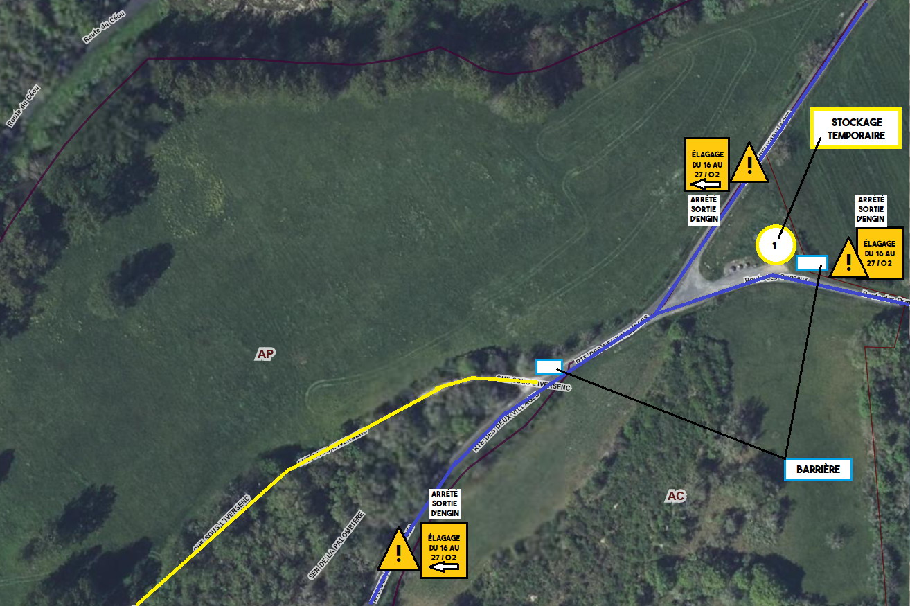Des peupliers morts et dangereux pour les riverains seront abattus, des camions et tracteurs circuleront entre la piste cyclable et le site de stockage provisoire ( voir carte jointe).
