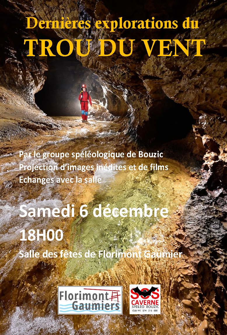 Venez participer à l’animation « Soirée spéléo le 6 décembre » samedi 6 décembre, 18h à la salle des fêtes de Florimont Gaumier.